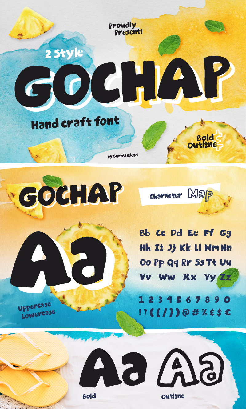 A handcrafted font with a playful crayon-marker style—that’s exactly what makes it so charming! Gochap brings a bold personality and eye-catching vibe to your designs. It comes in two fun styles: Bold and Outline, making it even more exciting to experiment with.