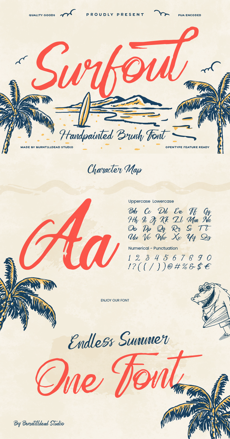 Designed to feel spontaneous yet smooth, whether you’re working on branding, posters, or Instagram quotes, Surfoul brings that warm, playful character you need. Perfect for summer posters, travel blogs, beachwear brands, social media graphics, event promos, product packaging, and anything that needs a splash of tropical soul.